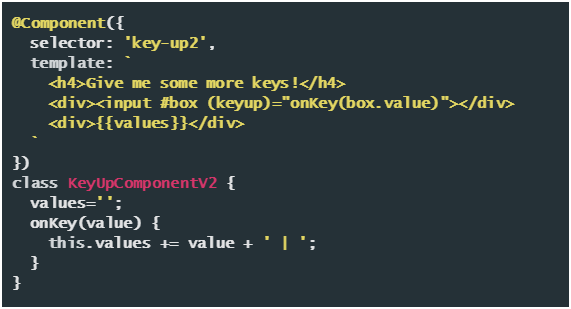 Hãy chứng minh với một clever keystroke loopback trong một single line của template HTML. Chúng ta không thực sự cần một component chuyên dụng để làm điều này nhưng chúng ta sẽ làm cho một dòng anyway.